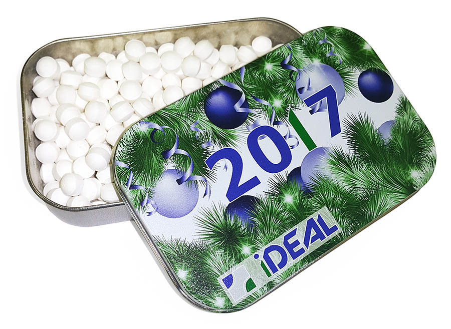 Освежающие мятные конфетки в необычной прямоугольной баночке с обычной крышкой – очередное вкусное пополнение в каталоге сувениров Рекламных Вкусностей ADSWEETS.