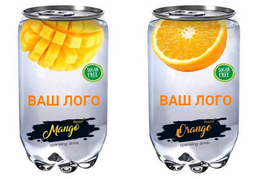 Лимонад и ароматизированная газировка в пластиковых баночках 0,3 л с логотипом