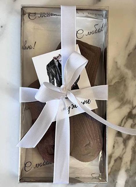 Носки из шоколада в упаковке с логотипом